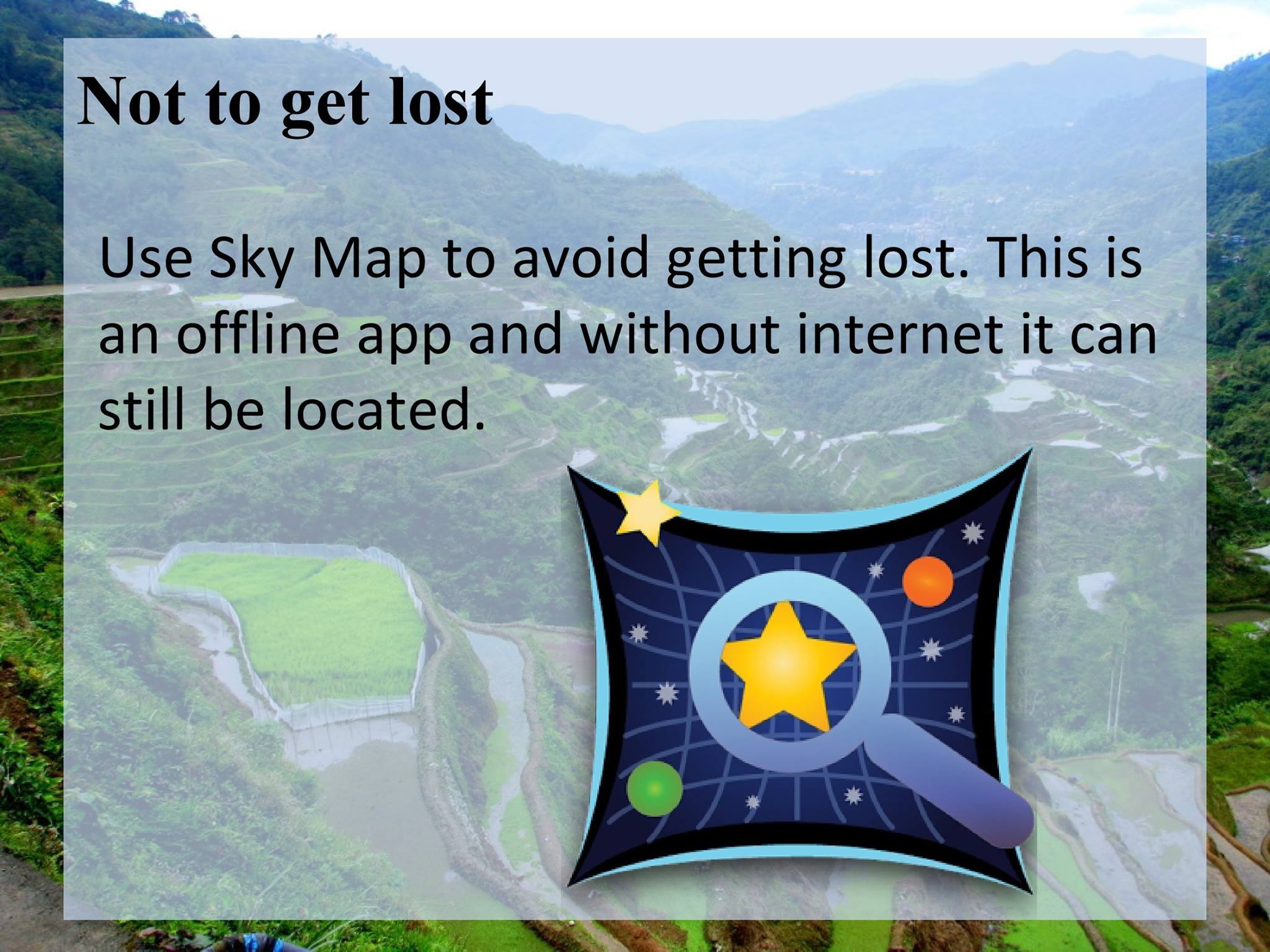 Sử dụng phần mềm Sky Map khi ra ngoài để tránh bị lạc đường. Đây là phần mềm bản đồ có thể sử dụng offline